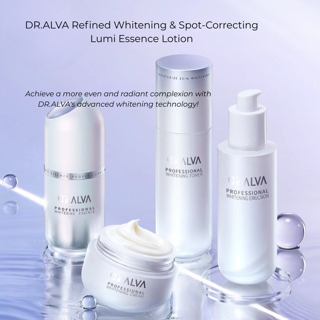 Unveil a visibly clearer, more luminous complexion with the DR.ALVA Refined Whitening & Spot-Correcting Lumi Essence Lotion. This advanced treatment lotion goes beyond simple hydration, working to target stubborn dark spots, post-acne marks, and uneven skin tone. Its gentle yet potent formula delivers both deep moisture and brightening actives, helping to fade discolouration and restore your skin's natural radiance for a smoother, more even-toned glow.