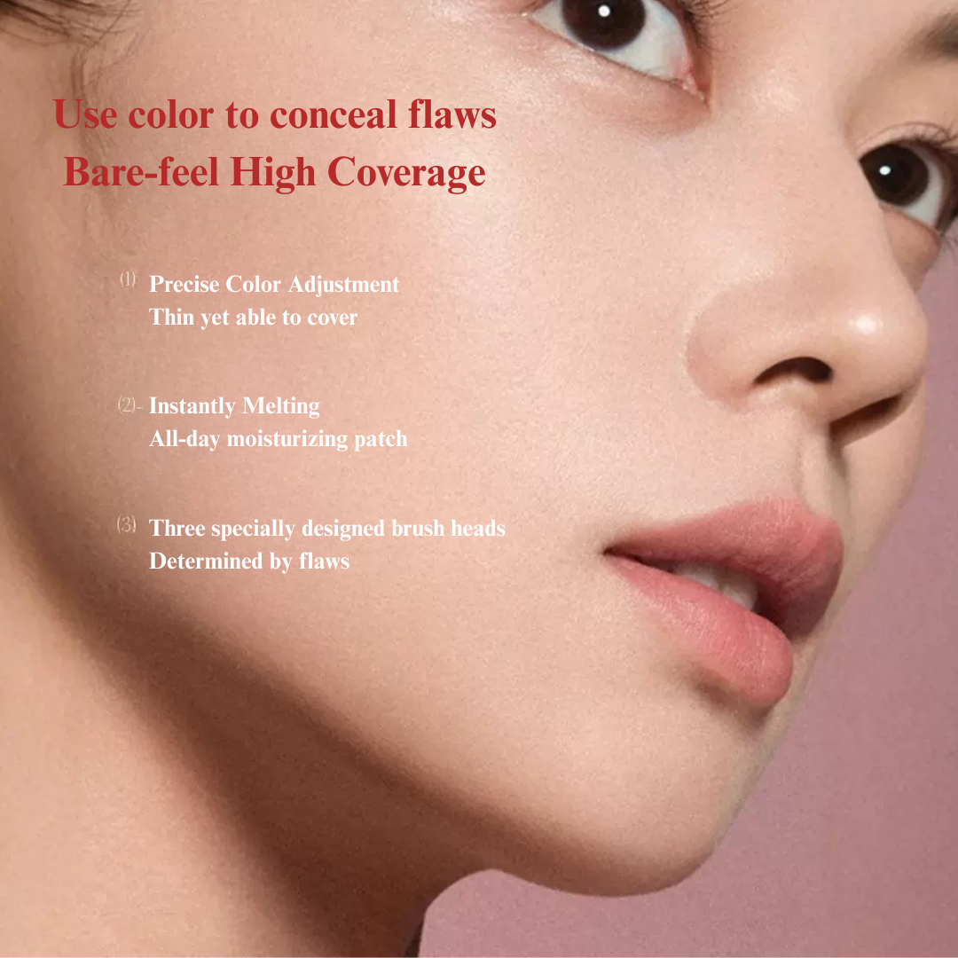 Start with the deeper shade to expertly conceal blemishes and any redness. Use the lighter, brightening shade to illuminate the under-eye area and highlight the high points of your face. Gently pat and blend the formula with your fingertips, a brush, or a sponge for a seamless, crease-proof finish.