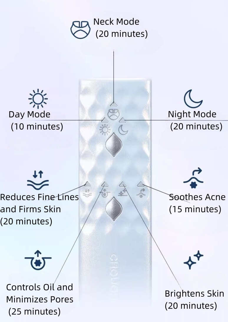 A: It is recommended that the total usage time per day should not exceed 30 minutes. The frequency and mode of use can also be adjusted according to the skin condition at different periods.