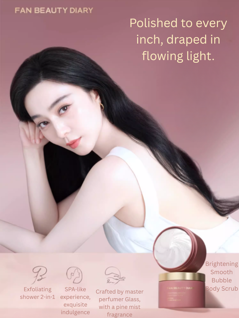 Indulge in a celebrity-approved, sensorial body ritual with the Fan Beauty Diary Brightening Smooth Bubble Body Scrub. This innovative 2-in-1 formula transforms from a rich scrub into a soft, cleansing lather, offering gentle yet effective exfoliation paired with deep hydration. Designed with spa-grade particles and a bespoke, uplifting fragrance crafted by a master perfumer, it buffs away dullness to reveal skin that is exceptionally smooth, soft, and radiantly glowing.