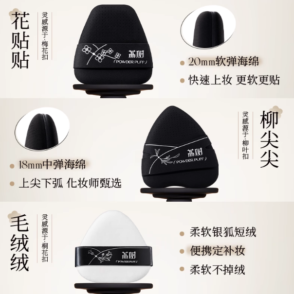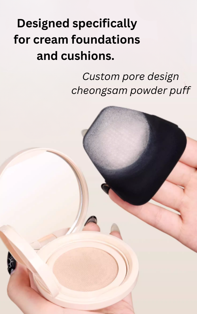 Artful Design: A luxurious cheongsam-inspired aesthetic makes this puff a beautiful addition to your vanity—functional art for your daily ritual.
